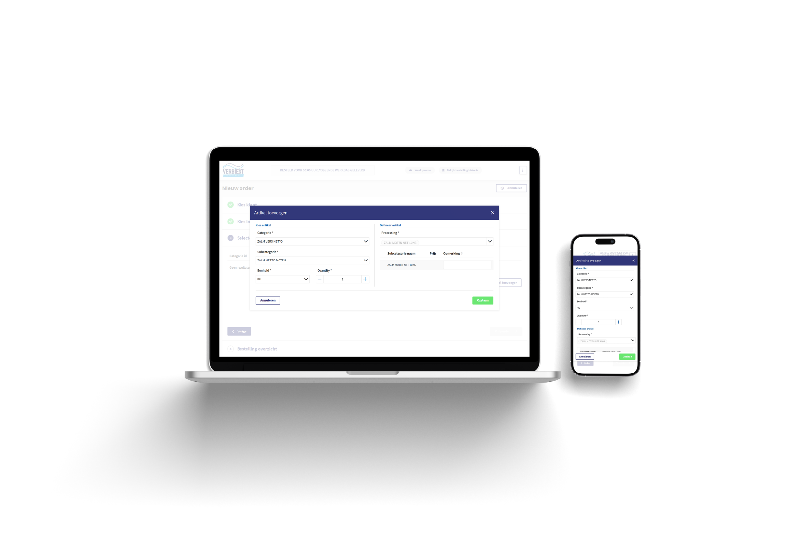 De webshop is speciaal ontwikkeld voor professionals in de vissector. Altijd inzicht in prijzen, voorraad en leveringen. Bestellen wanneer het u uitkomt, 24 uur per dag.